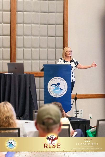 Delegates from across the United States, Canada, South Africa, Mexico, Puerto Rico, and the United Kingdom attended Sue’s session, which drew from psychological theory, developmental science, and real-world practice. Sue explored how connection, regulation, and play shape early learning in the water, and how these principles can transform the way swim educators approach teaching young swimmers.